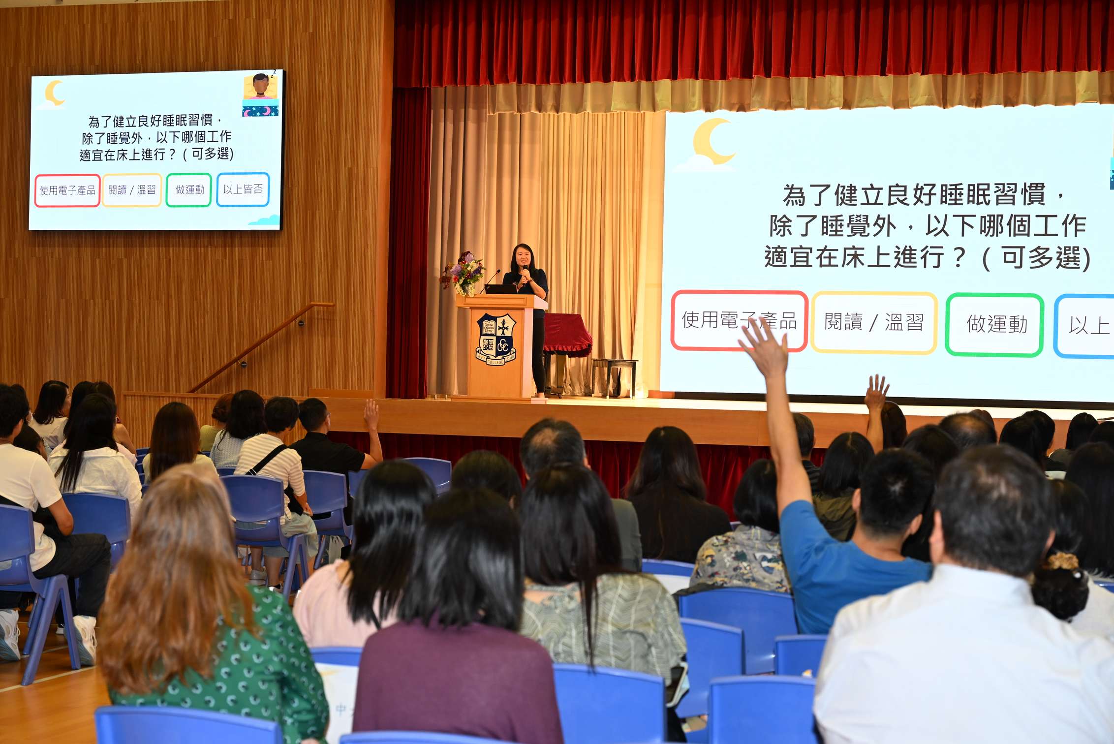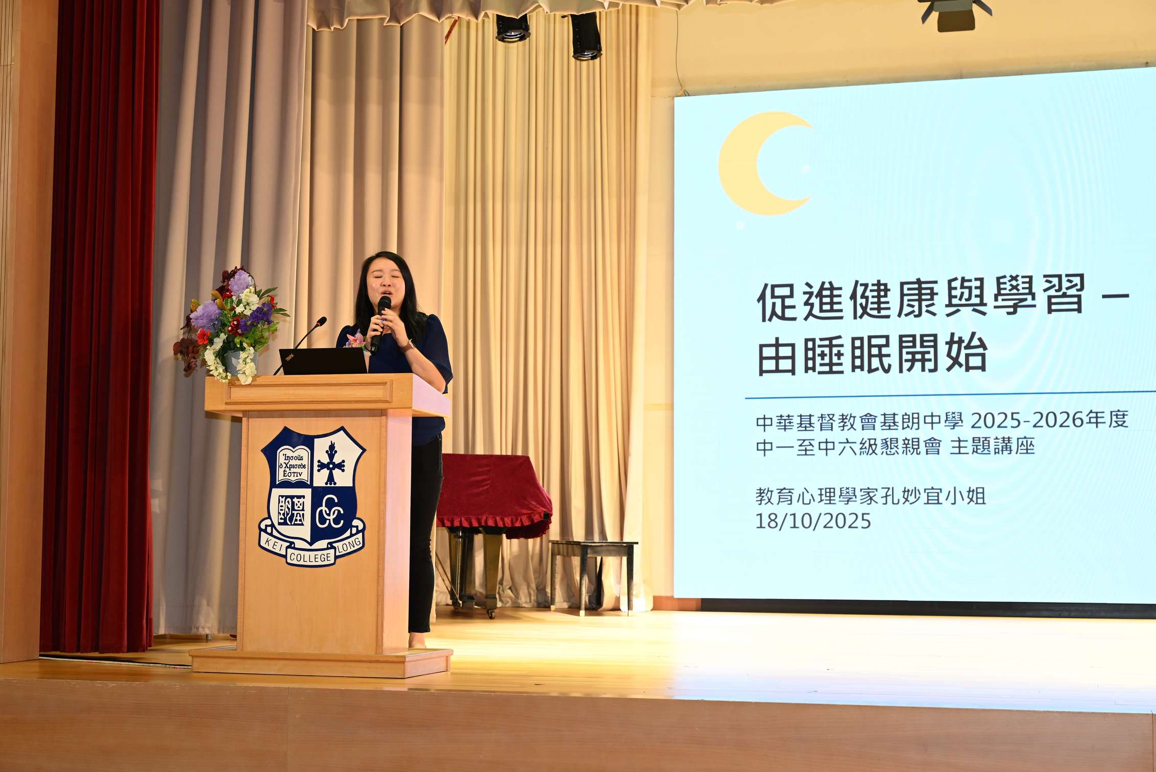 On the afternoon of October 18th, the "Form 1 to Form 6 Parent-Teacher Association 17th Annual General Meeting" was held in the auditorium. The agenda included a welcome address, association affairs and financial reports, election of standing committee members, a lecture on sleep and learning, inauguration ceremony for new committee members, presentation of certificates of appreciation to parent volunteers, and group meetings between homeroom teachers and parents, all aimed at promoting communication and cooperation between home and school.